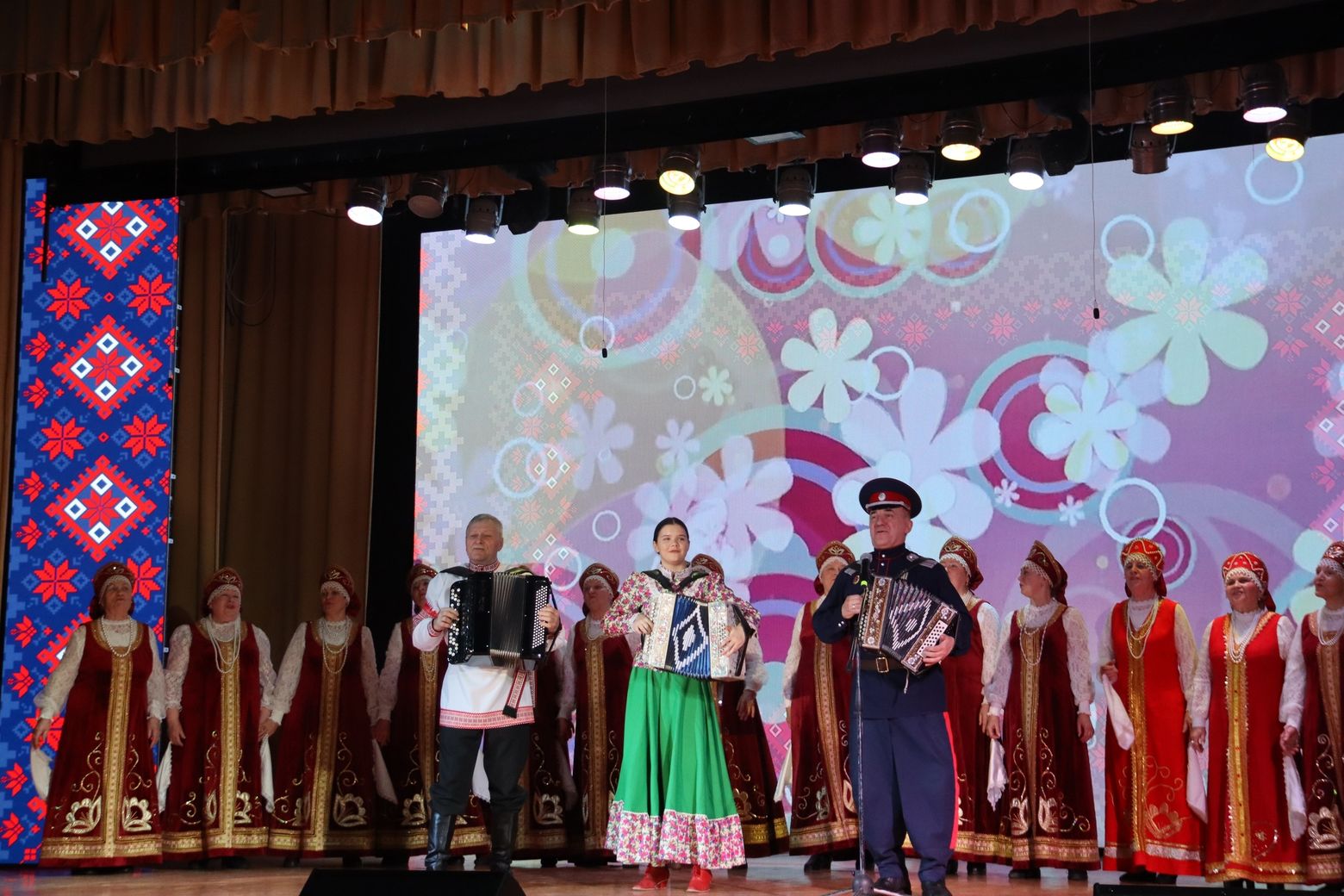 На сцене развернулось настоящее калейдоскопическое представление. Талантливые коллективы округа представили многообразие культур России, показав традиции и обычаи таких народов, как казаки, лезгины, карелы, мордва, башкиры и чуваши. Зрители наслаждались зажигательными танцами, проникновенными песнями и, конечно же, душевным звучанием русской гармони, которое объединило всех присутствующих.