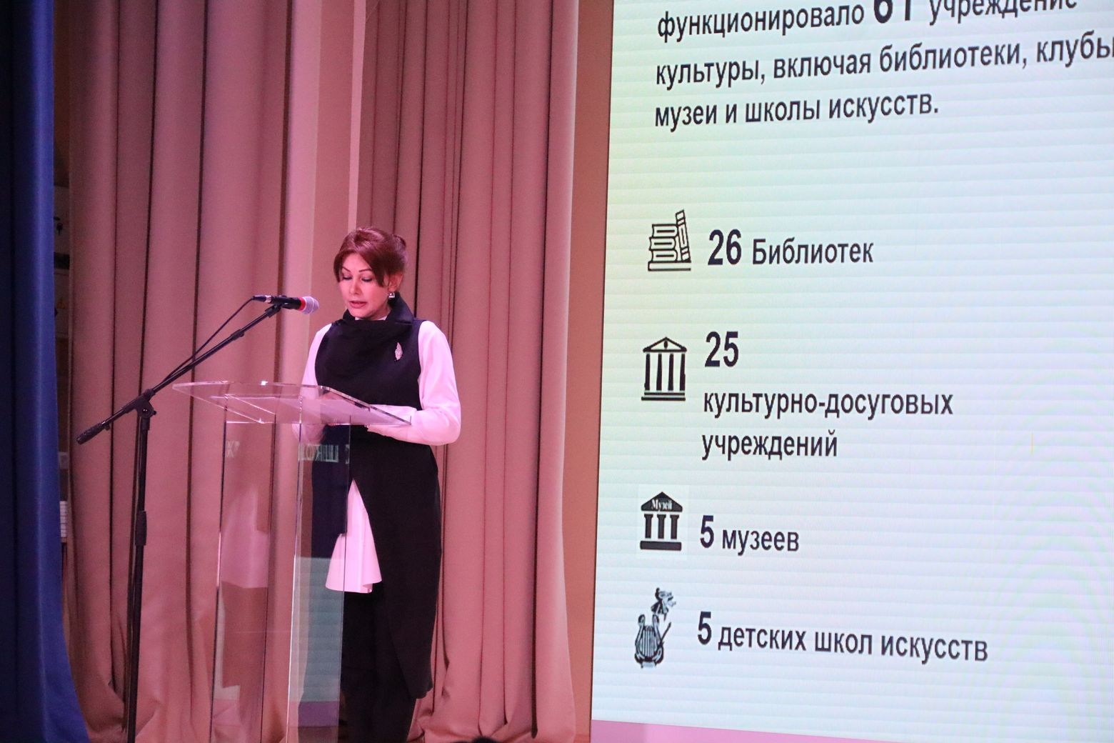 Мероприятие открылось докладом начальника управления культуры Петушинского МО, Елены Александровны Прохоровой. Она представила подробный анализ итогов работы сферы культуры за 2025 год, отметив достижения, успехи и наметив перспективы развития. Доклад подчеркнул значимость культурных учреждений и инициатив в формировании духовного облика округа.