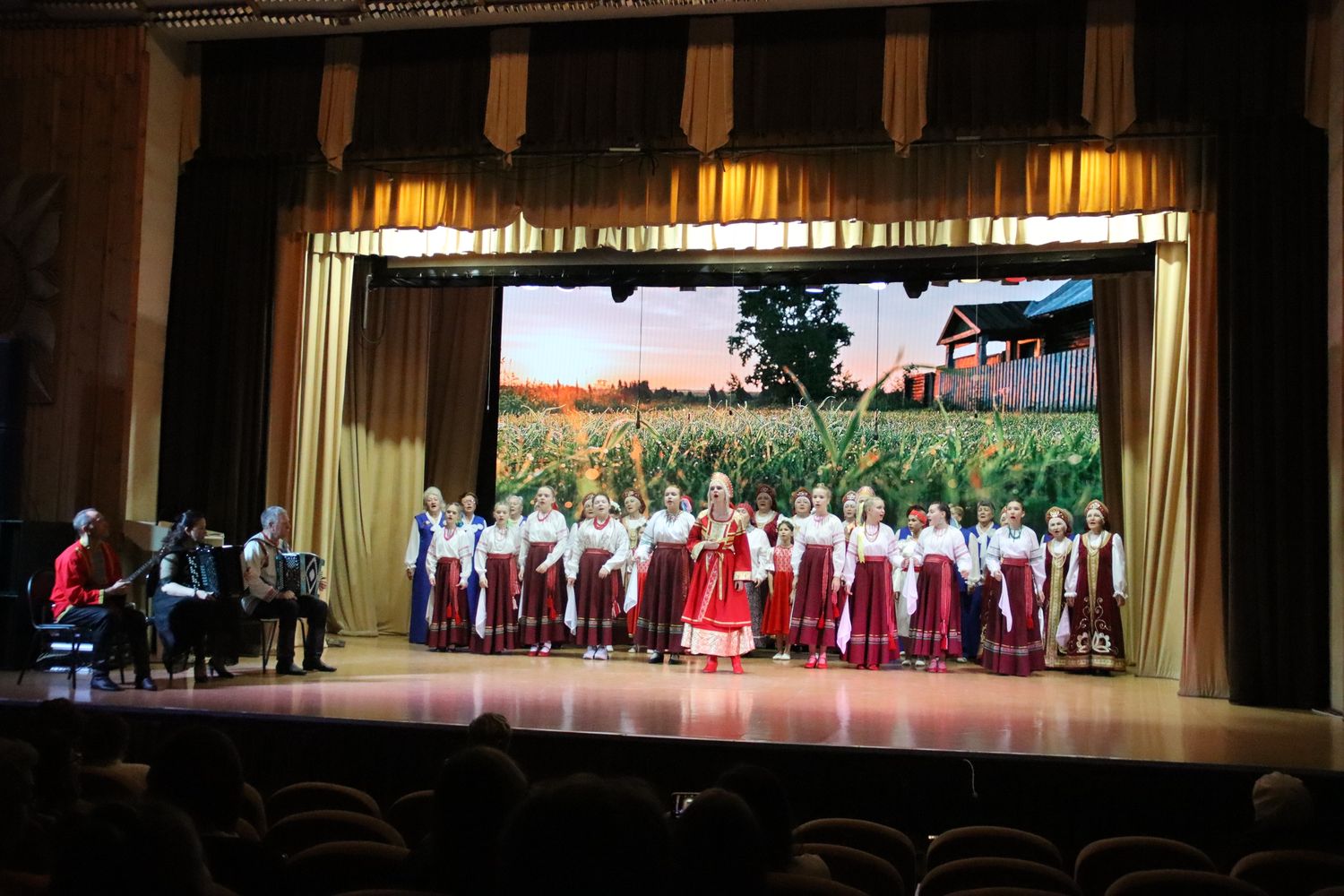 Выступление сводного хора, представившего богатство песенного наследия Владимирского края окунуло присутствующих в мир русской песни. Состав хора: народный хор русской песни РДК руководитель А. Исковяк, Заслуженный работник культуры РФ, народный хор ветеранов РДК руководитель Т. Кудинова, народный ансамбль «Калинушка» руководитель И. Становская, ансамбль народной песни «Беседушка» ДШИ г. Петушки преподаватель А. Пляскина. В их исполнении прозвучали песни Владимирского края «Уж ты, утка моя луговая» и «Не в трубоньку трубила».