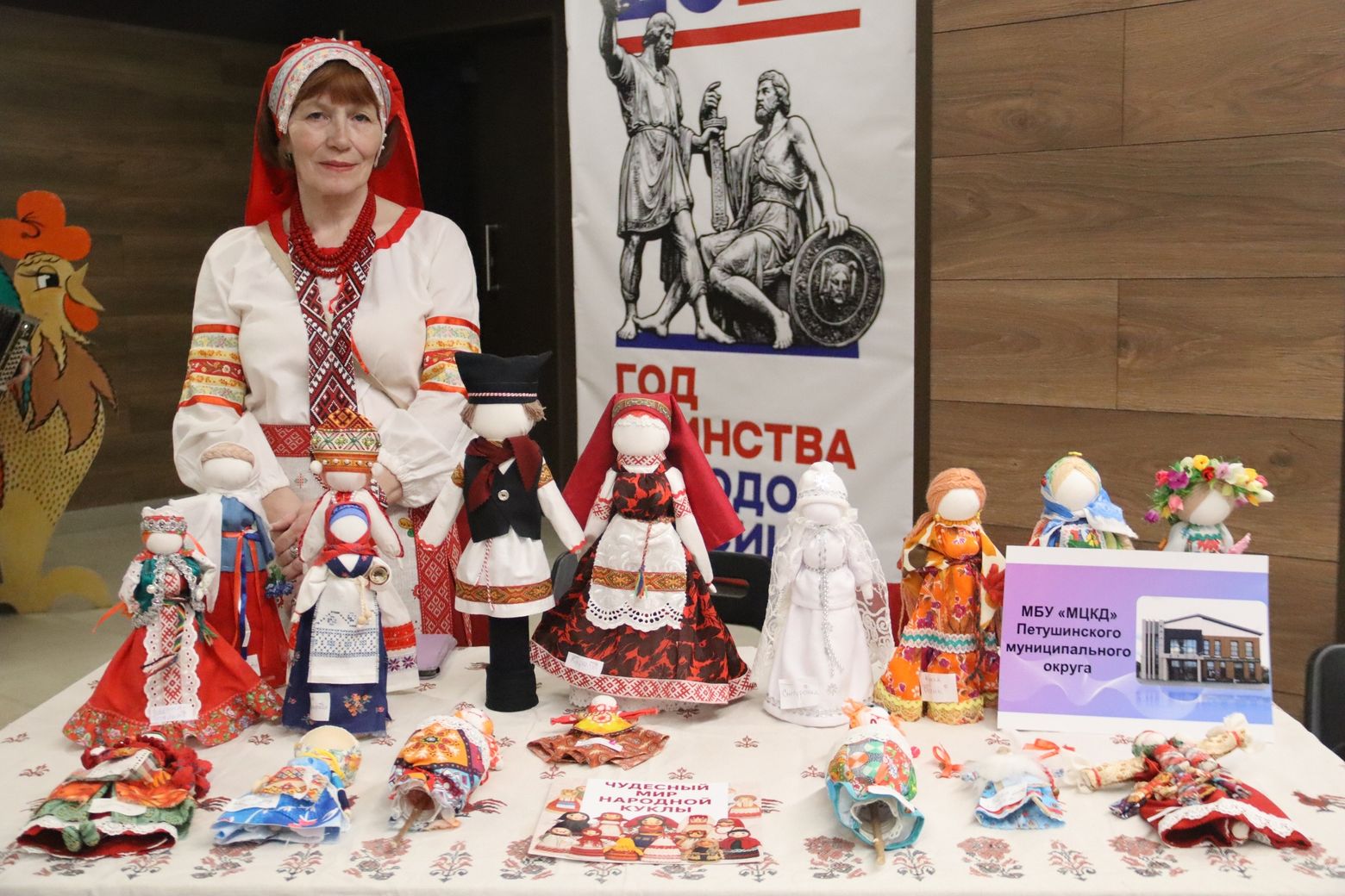 Уже с порога гостей встречала атмосфера дружбы и гостеприимства. В фойе была организована выставка, демонстрирующая культурное богатство народов, представленных коллективами Петушинского округа. А веселый Чебурашка с целой корзиной апельсинов создавал праздничное настроение, угощая всех желающих цитрусовыми.
