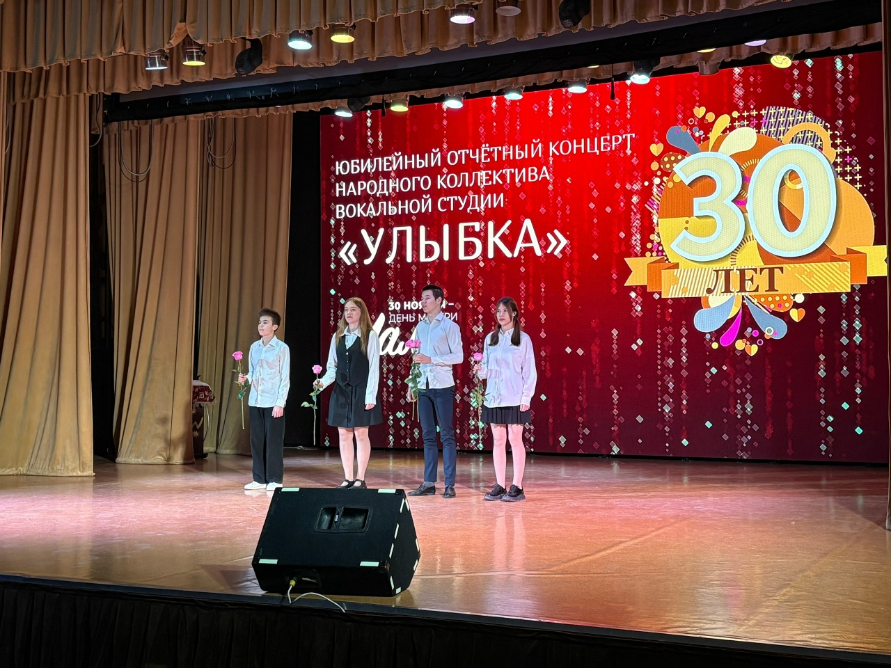 30 ноября, в районном Доме культуры состоялся замечательный концерт. Он был посвящен трогательному празднику Дню матери в России и 30-летнему юбилею народной вокальной студии "Улыбка". Киноконцертный зал был полон: пришли преданные поклонники студии, гордые родители юных артистов, а также жители города и района, желающие разделить радость этого события.